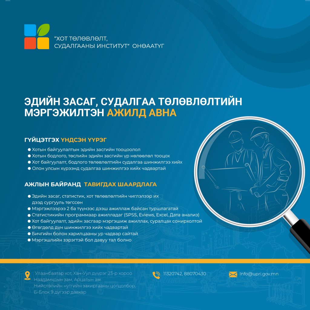 Эдийн засаг судалгаа төлөвлөлтийн мэргэжилтэн, бүс нутгийн эдийн засагч ажилд авна